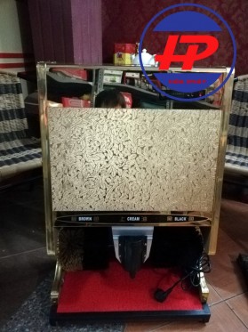 Chất liệu Gỗ kết hợp với inox chống rỉ (Thân máy), tráng gương bóng (bề mặt hoa văn 3D)