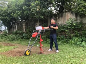 Sản phẩm máy khoan đất chúng tôi cung ứng trên thị trường đã giải quyết được những vướng mắc bà con đang gặp phải. Để tối ưu được công dụng của máy, hiện nay công ty chúng tôi đã cải tiến thành máy khoan đất đây tay có bánh xe. Máy nhỏ gọn, bà con di chuyển cơ động, có thể sử dụng 2 người hoặc một người, đặc biệt với công suất lên tới 2,3kw thì việc đào được nhiều hố trở lên dễ dàng hơn.